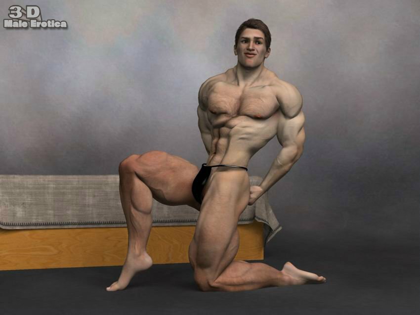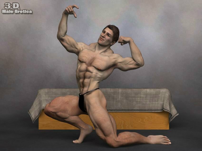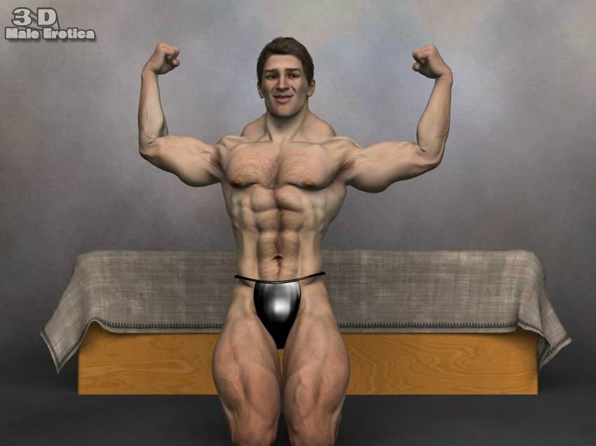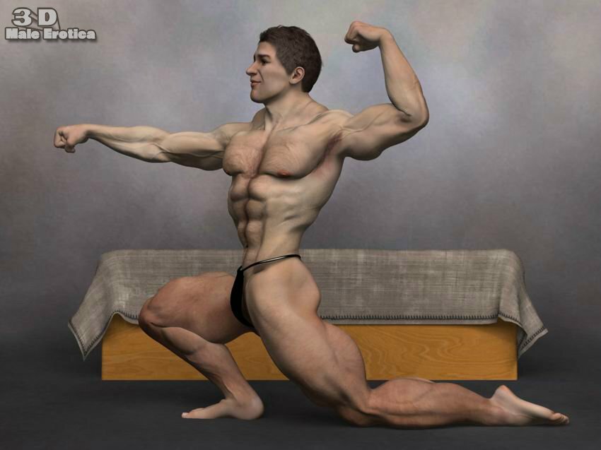 3d male body builder gets nude